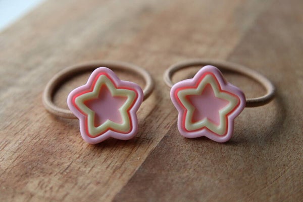 Een setje van 2 elastieken met roze sterretjes. Leuk om in je staartjes/vlechtjes te doen!